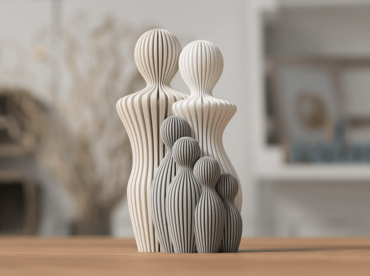 Mais do que um objeto decorativo, esta escultura carrega significado. Cada curva e cada figura representam a união entre pais e filhos, tornando a peça um elemento emocional e esteticamente marcante para qualquer ambiente.