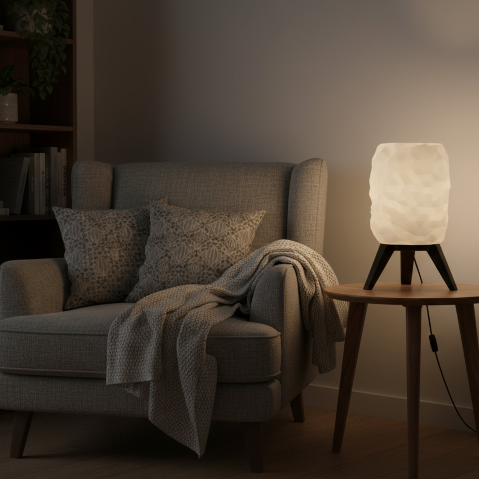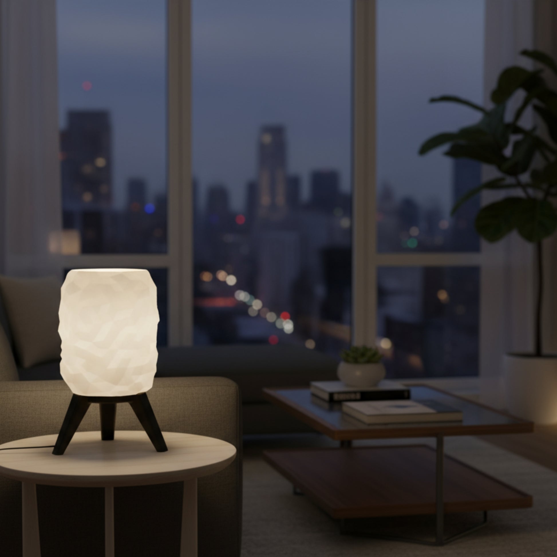 A Luminária de Mesa Prisma é uma peça de design que transcende a funcionalidade. Sua cúpula com texturas geométricas cria um jogo fascinante de luz e sombra, transformando qualquer ambiente em um cenário de sofisticação e aconchego. Feita à mão em biopolímero premium, é a escolha perfeita para quem busca exclusividade e um toque de arte na iluminação.